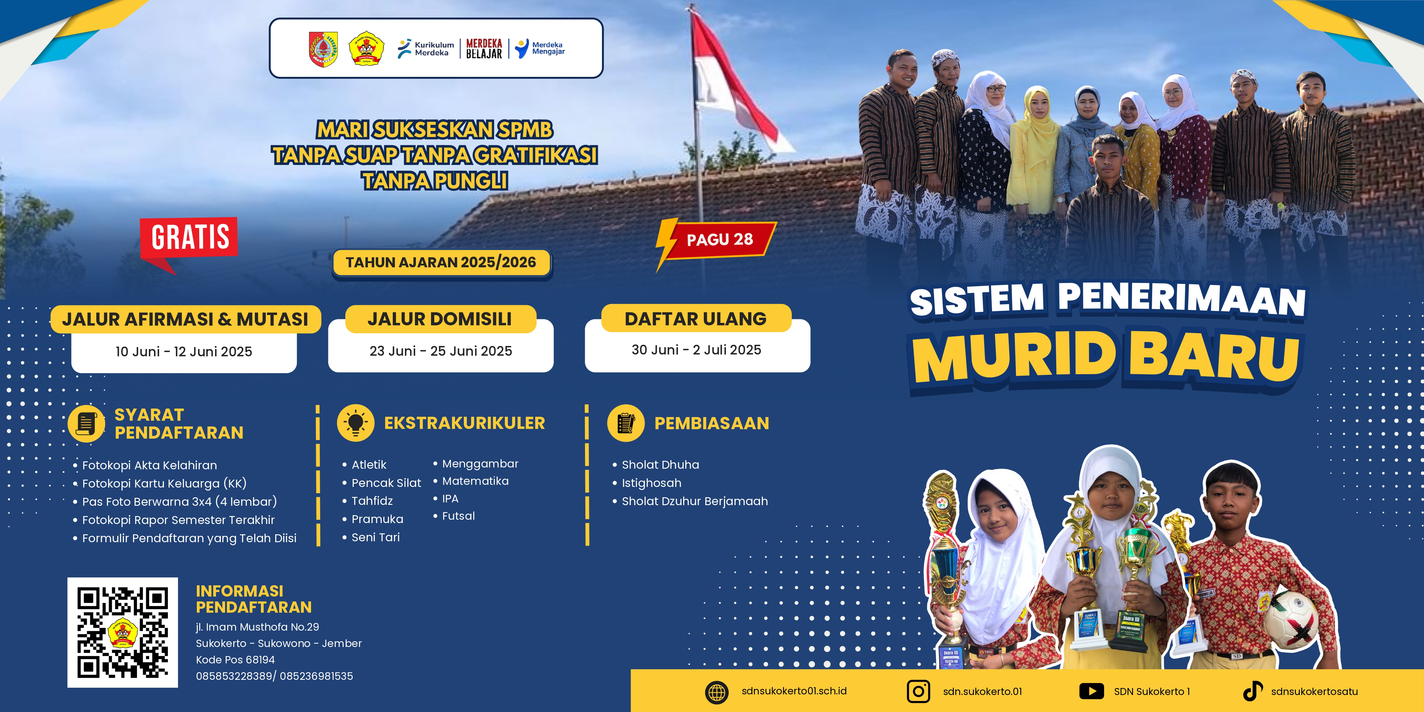 Telah dibuka Penerimaan Murid baru SD Negeri Sukokerto 01 Tahun Ajaran 2025/2026, yuk catat jadwal dan kuotanya jangan sampai terlewat!!!